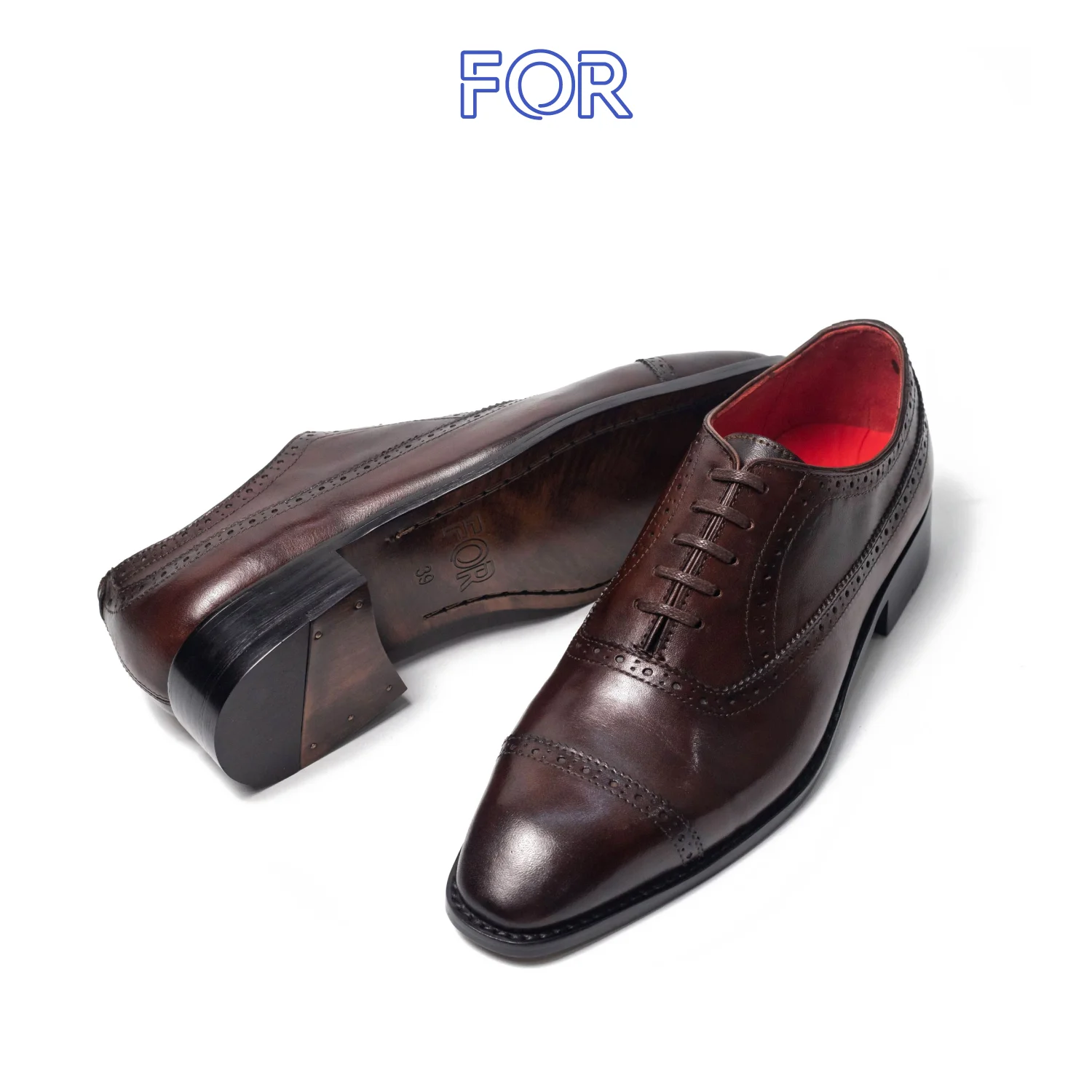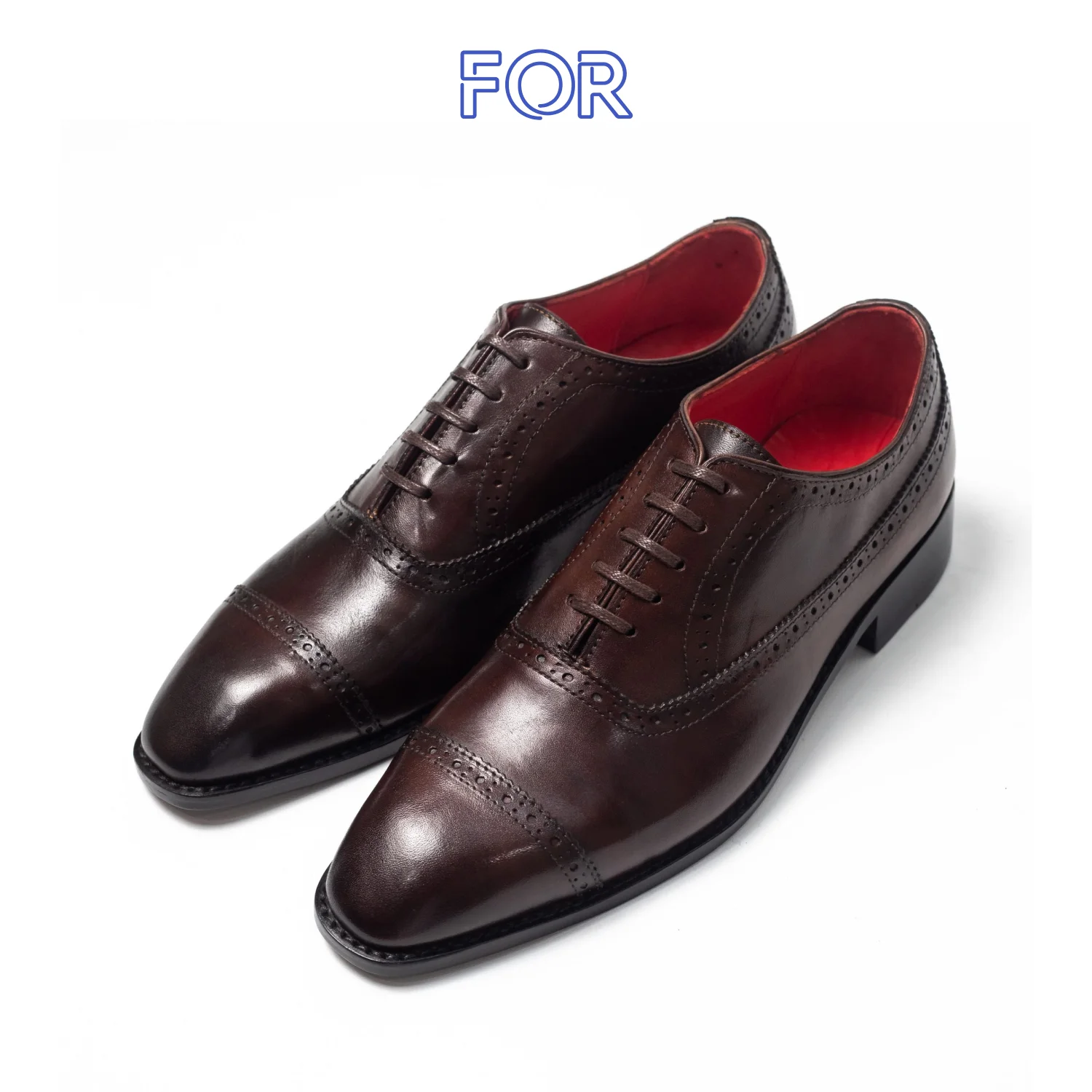 GIÀY CAPTOE OXFORD DA BÒ Ý ĐẾ DA MÀU NÂU PATINA ZOF01