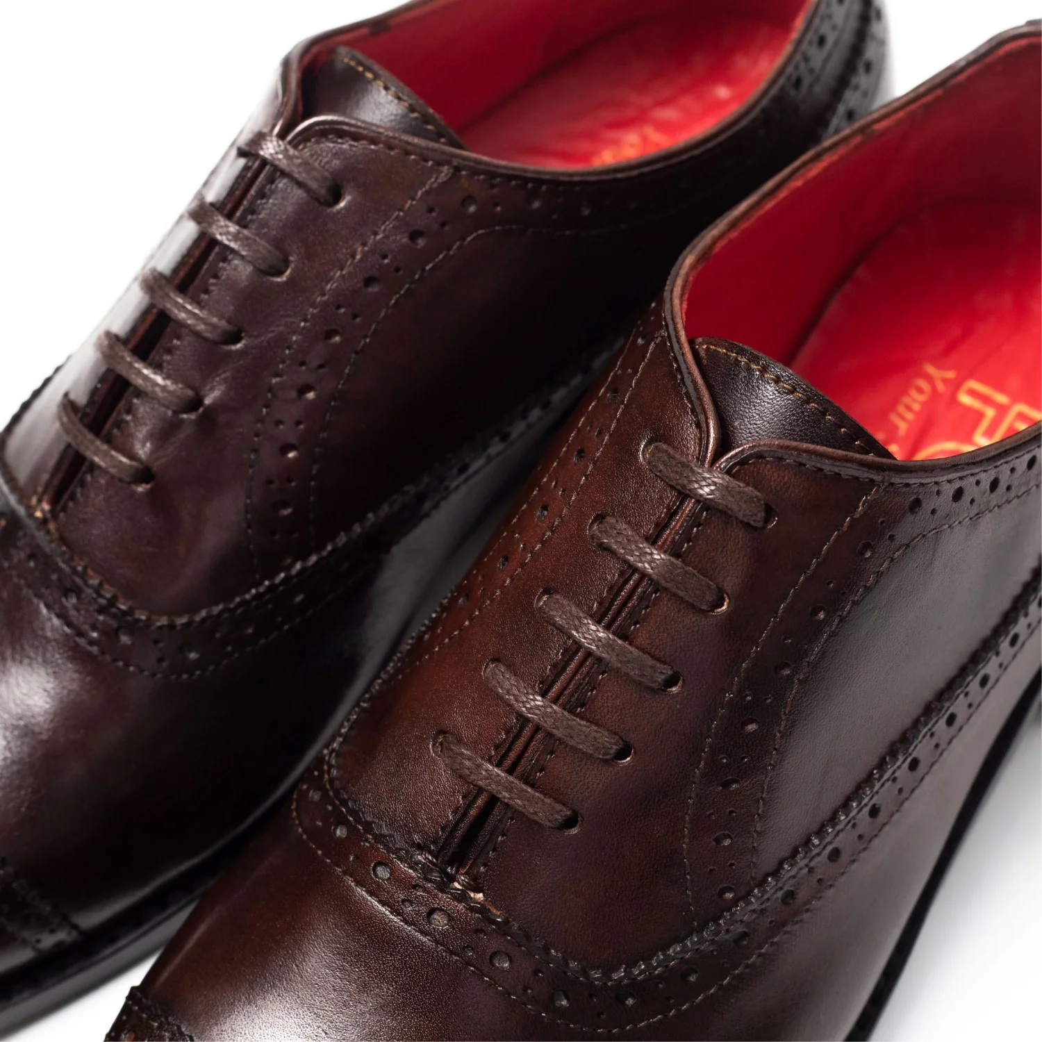 GIÀY WINGTIP OXFORD MÀU PATINA CHOCALATE DA BÒ Ý ROF05