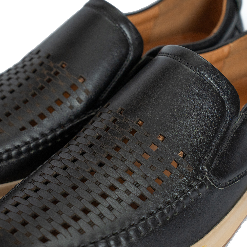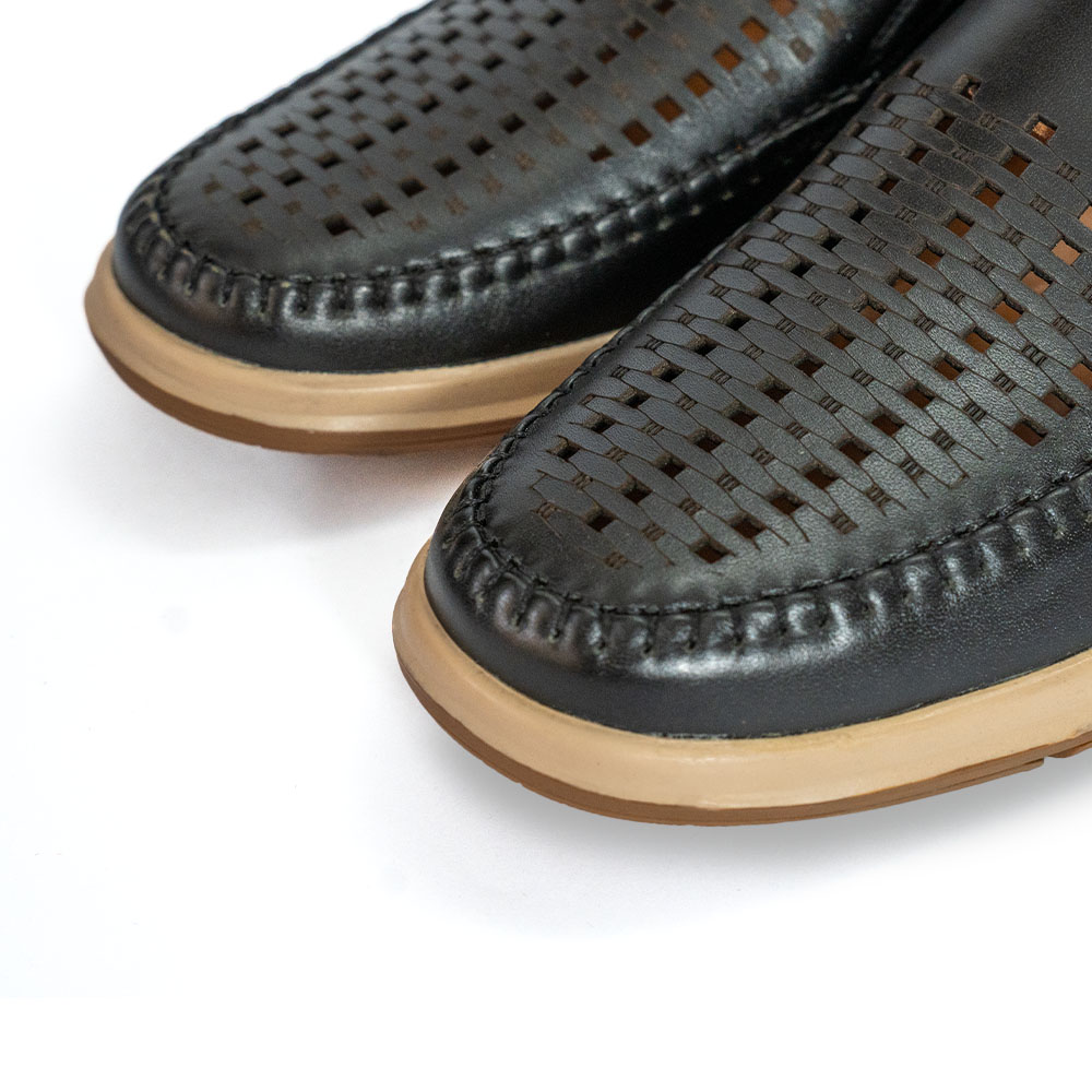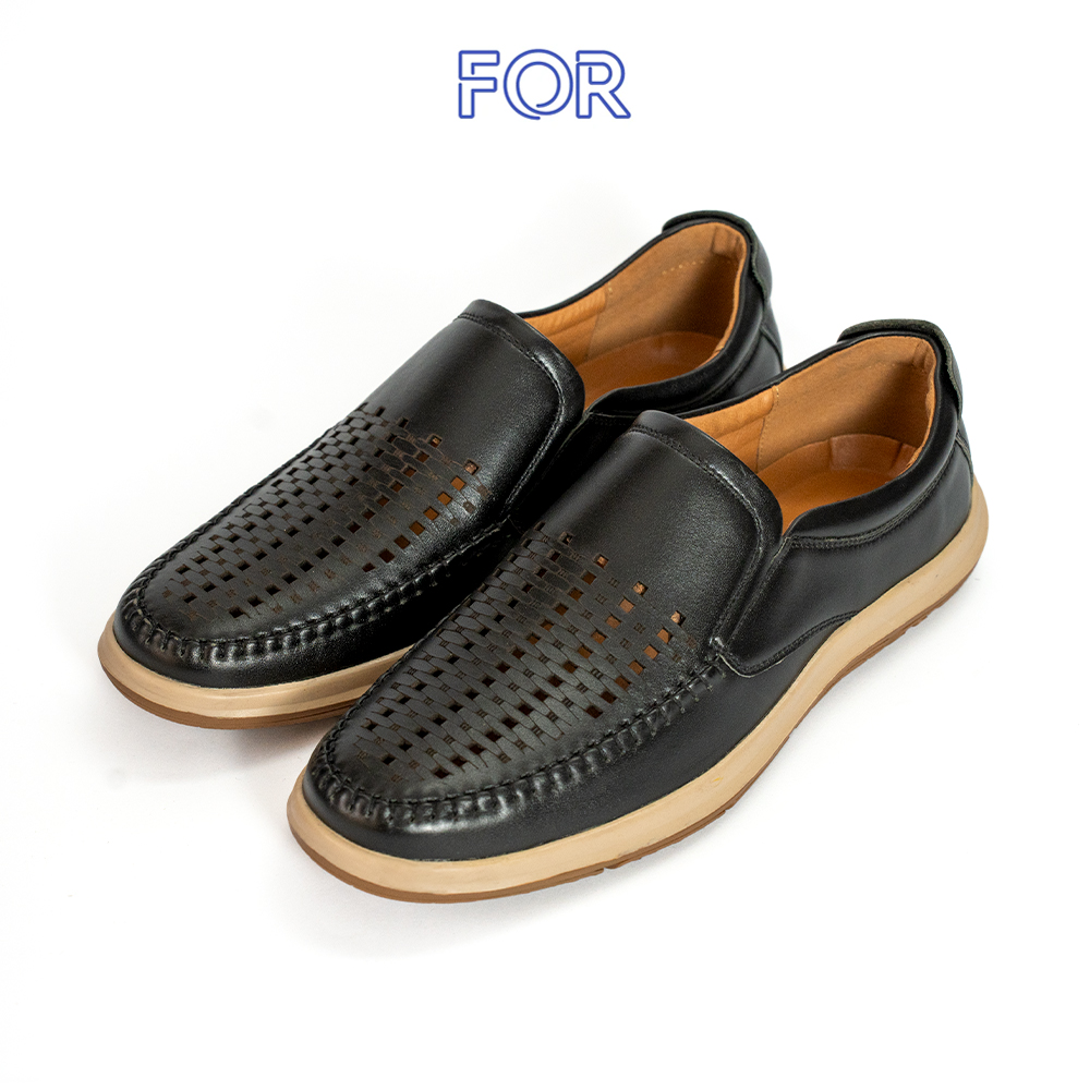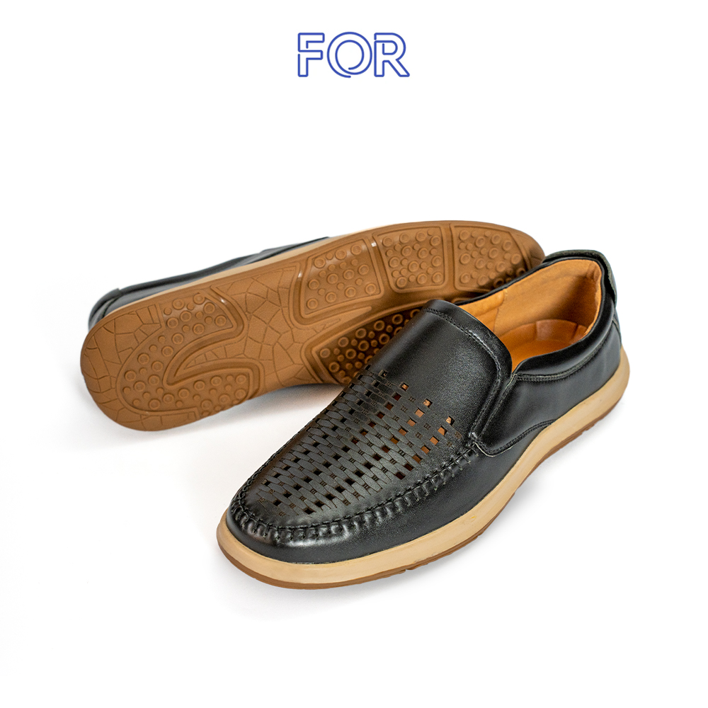 GIÀY LƯỜI FOR DA BÒ LỖ THOÁNG MÀU ĐEN F08