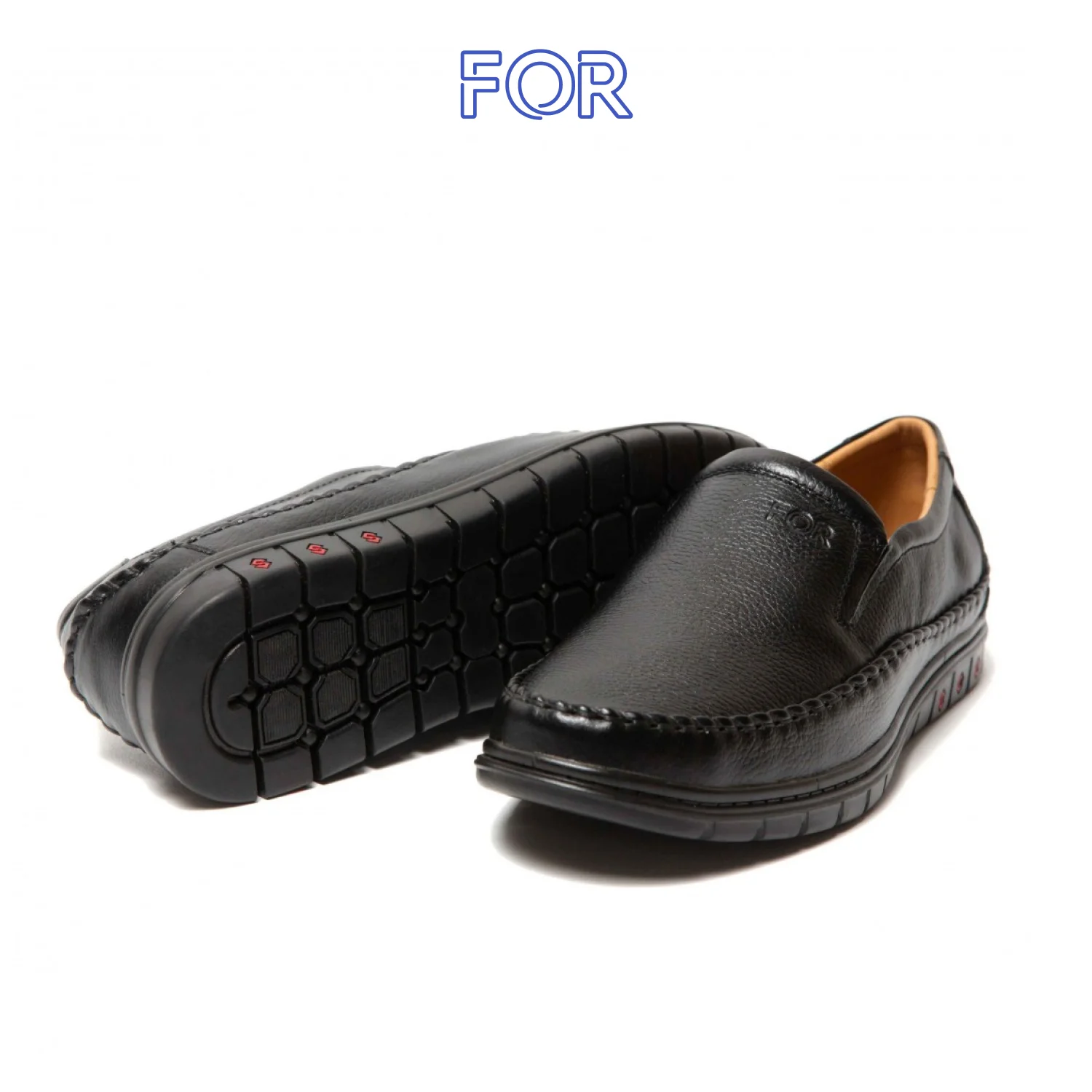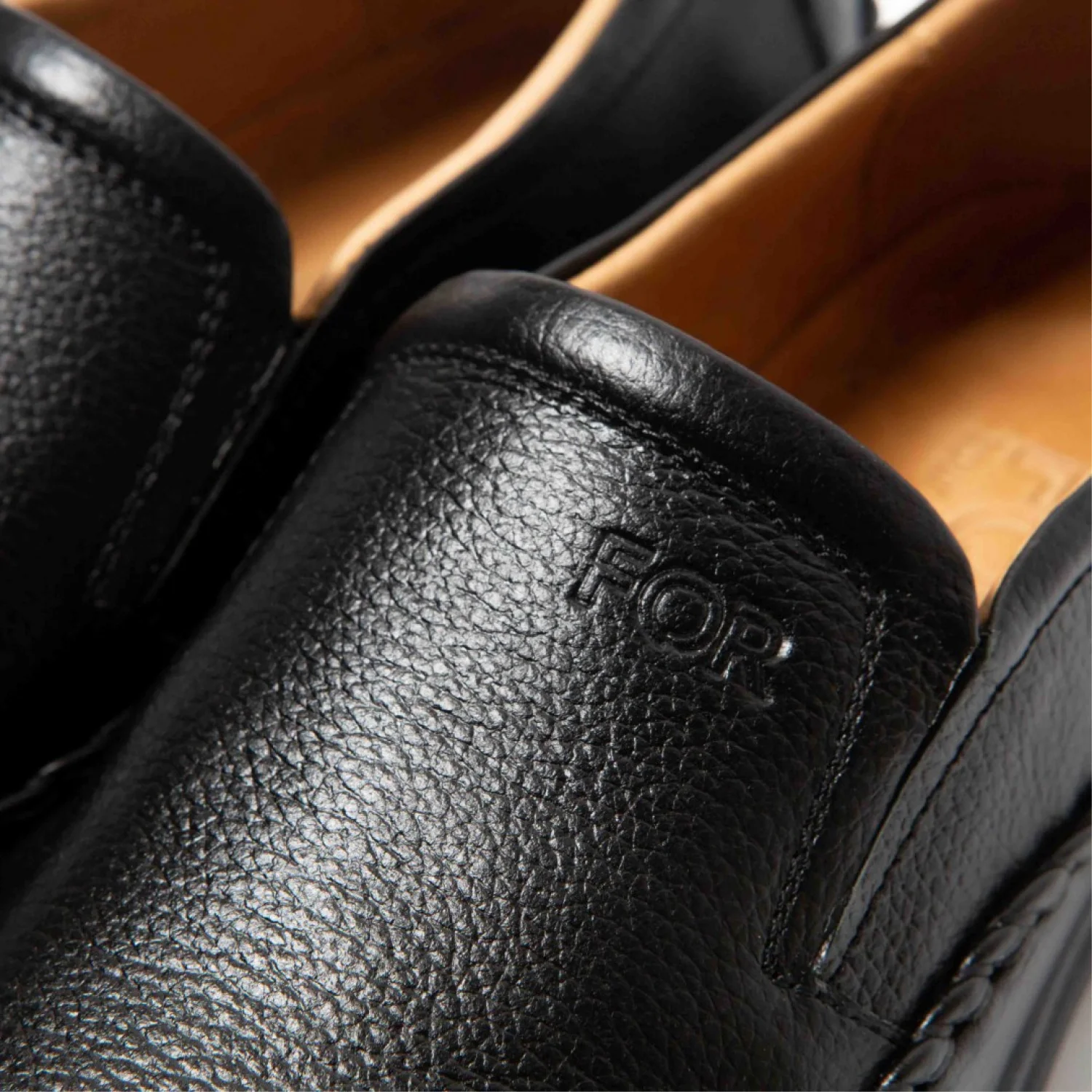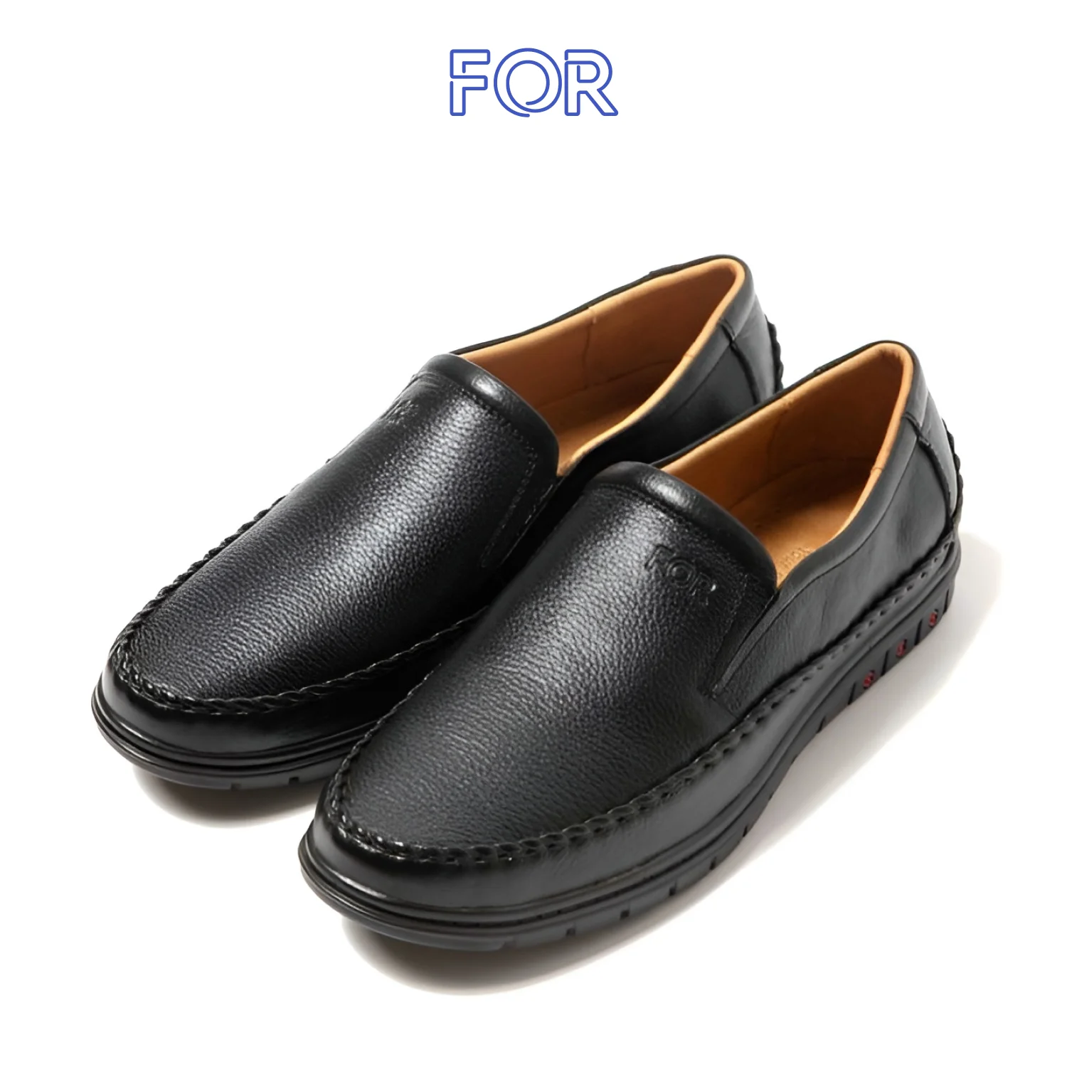 GIÀY LƯỜI FOR DA BÒ LỖ THOÁNG MÀU ĐEN F08