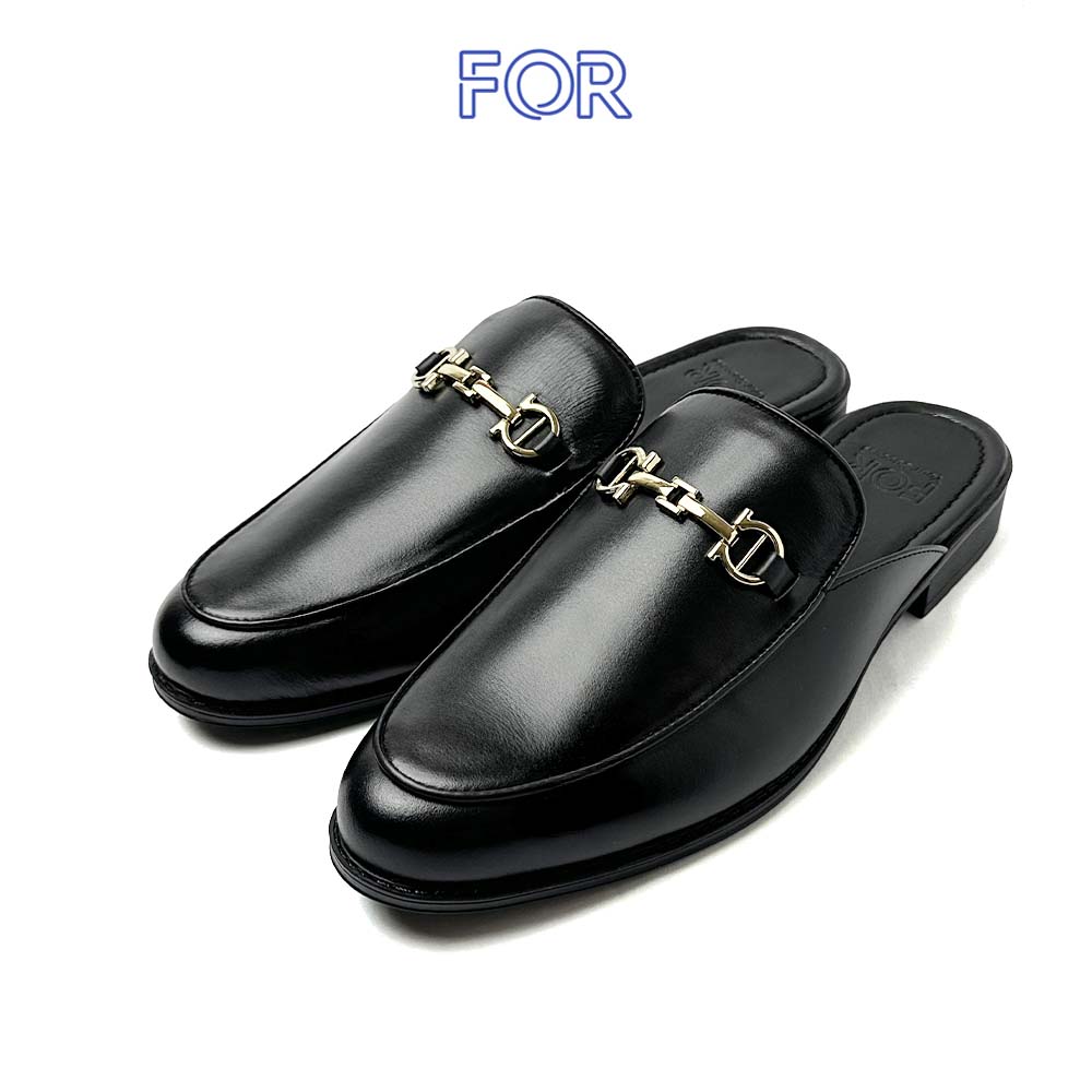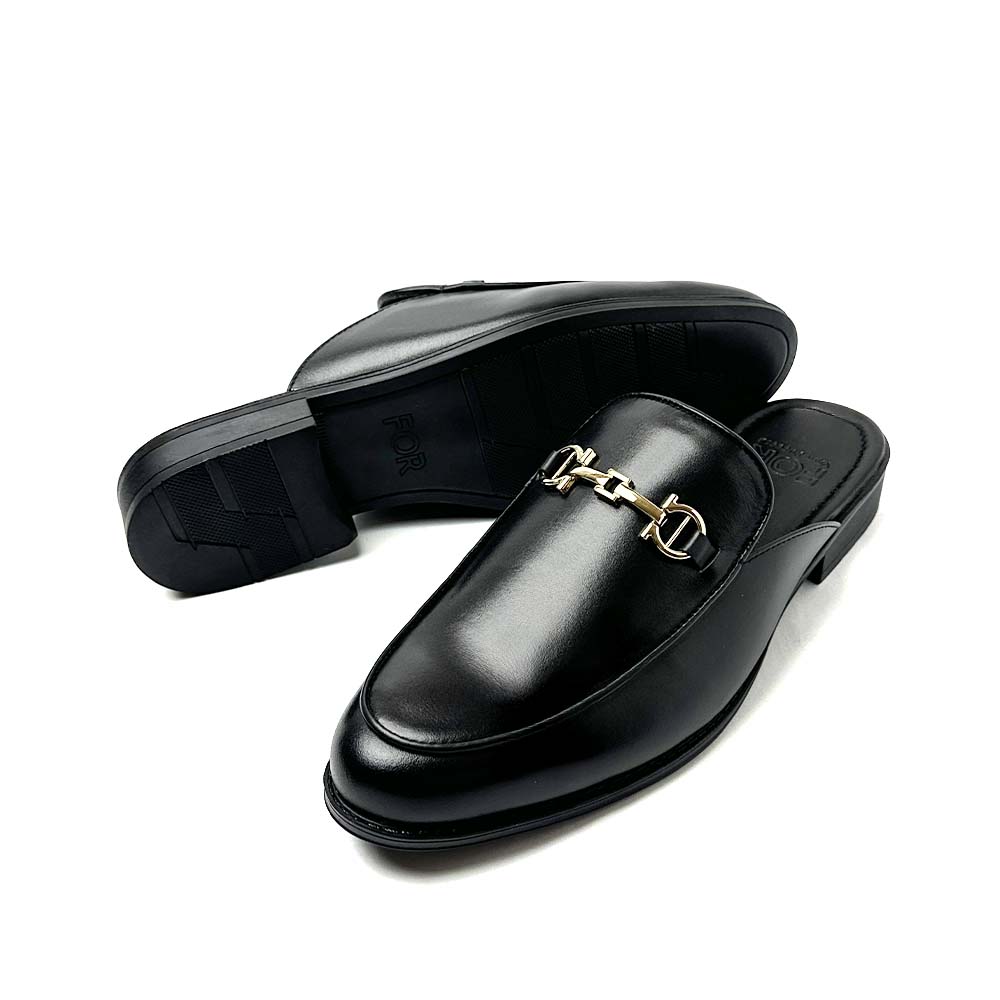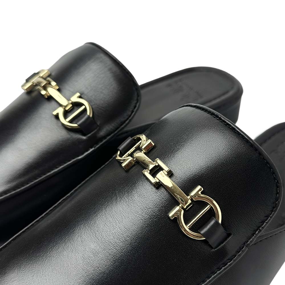SỤC HORSEBIT MULES DA BÒ MÀU ĐEN KHUY VÀNG SF01