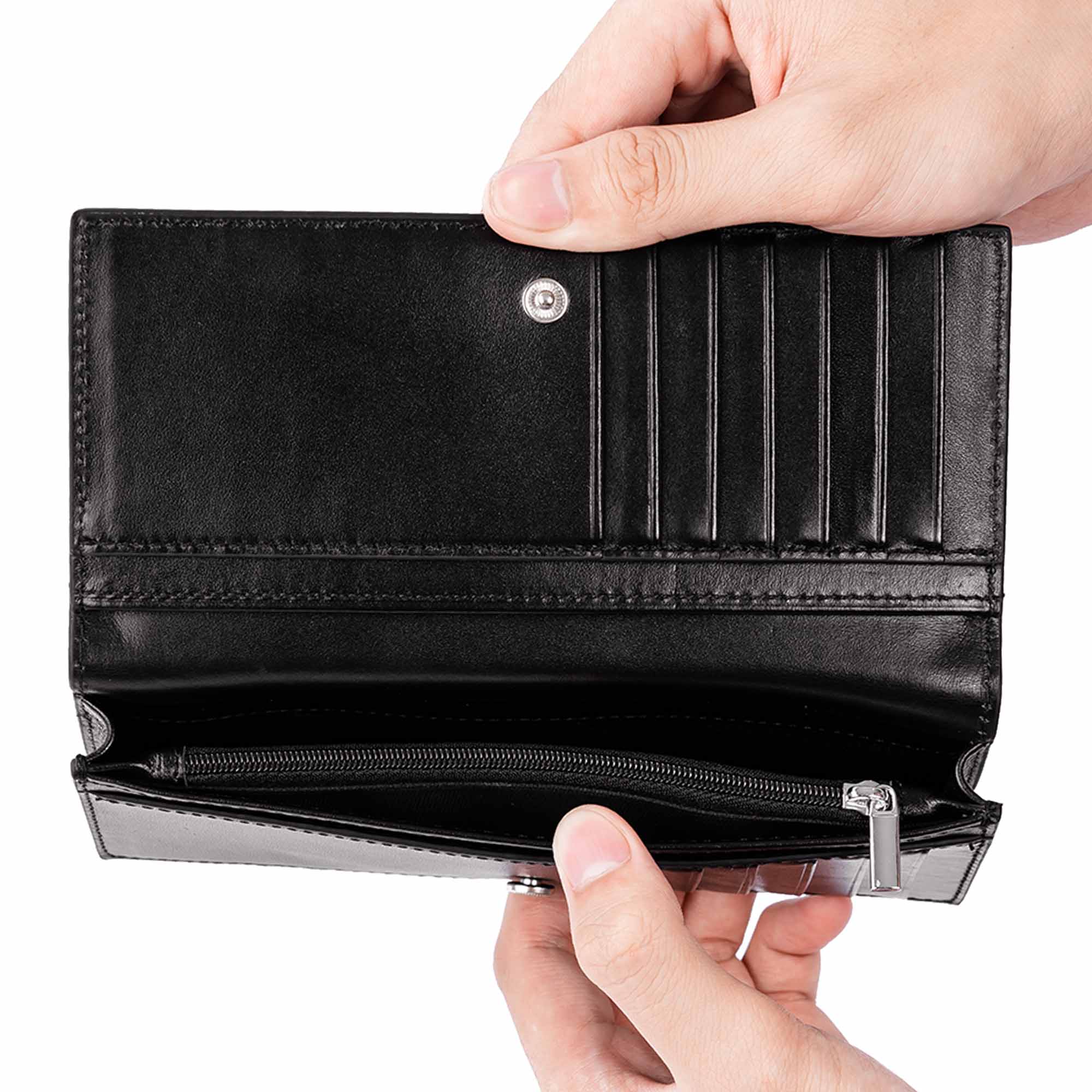 VÍ DA BÒ TRƠN CẦM TAY MÀU ĐEN – V51D